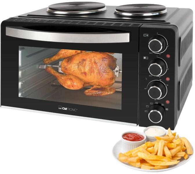 Clatronic KK 3786 Miniküche, 3100 W, 28 L, 2 Kochplatten, mit Backofen, Drehspieß, schwarz (263984)