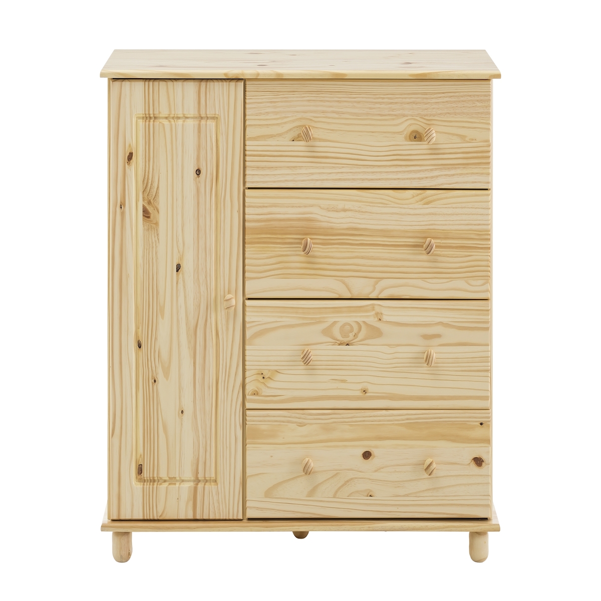 SIT Möbel Kommode | 4 Schubladen, 1 Tür | Kiefer-Holz massiv | B 121 x T 43 x H 102 cm | natur-lackiert | 19000-64 | Serie KOMMODE