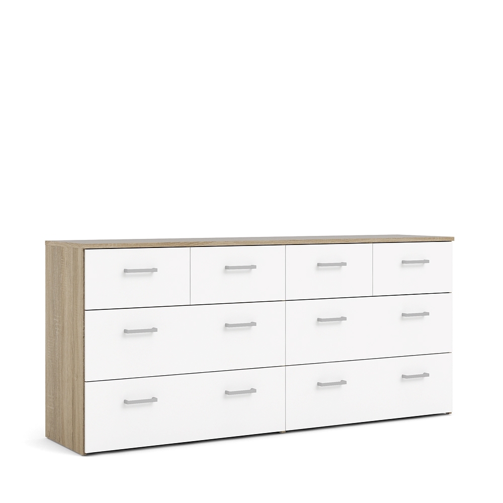 Spell Kommode breit 4 kleine und 4 grosse Schubladen Eiche Dekor, weiss.