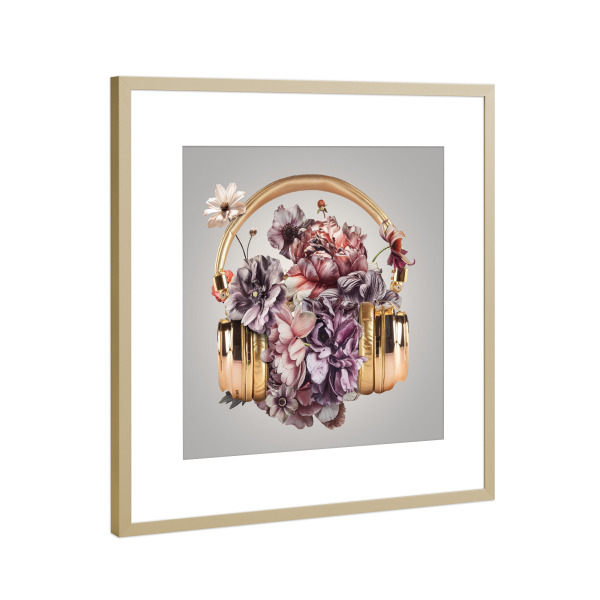 Poster mit Rahmen Gold "Kopfhörer" artboxONE - Floral,Musik - Kopfhörer,Musik,Kopfhörer,Blumen,Blumenstrauß,Blumen,Golden kopfhörer,Gold