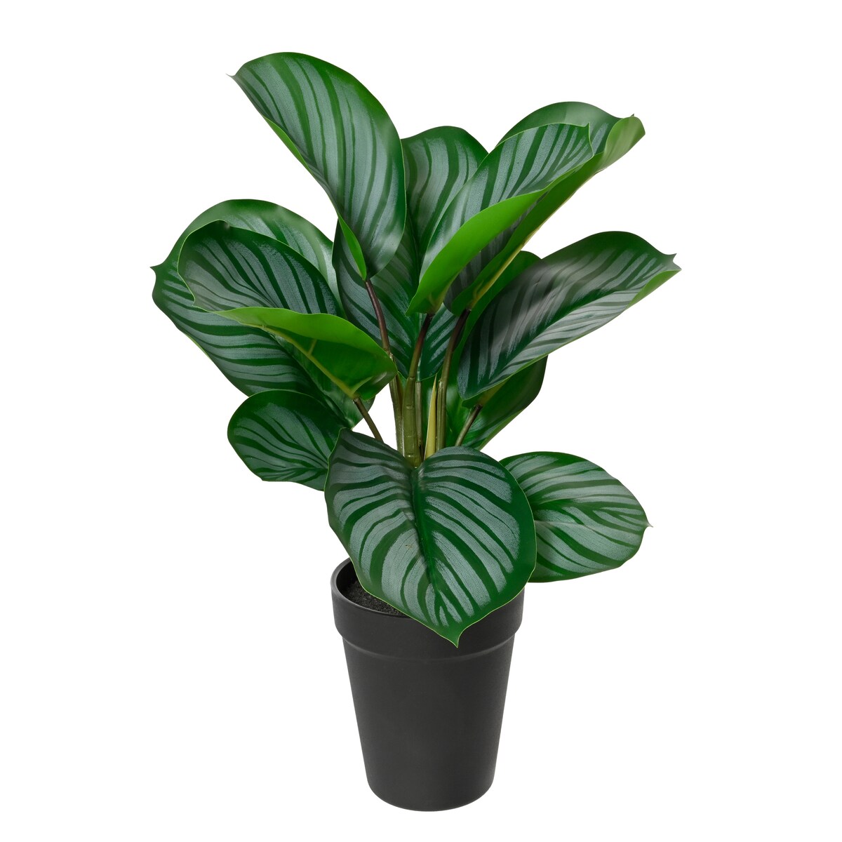 Calathea Zebrina – Korbmarante – Kunstpflanze – 42cm hoch – Schwarzer Topf Ø10–16cm – Realistisches Zebramuster – Pflegeleicht & dek...