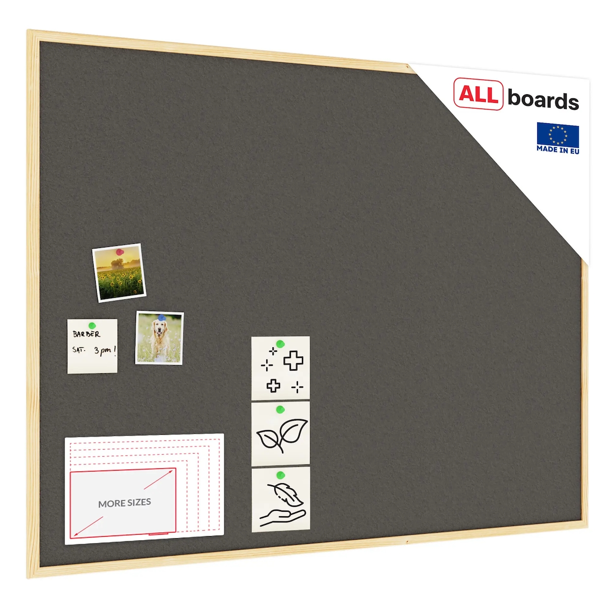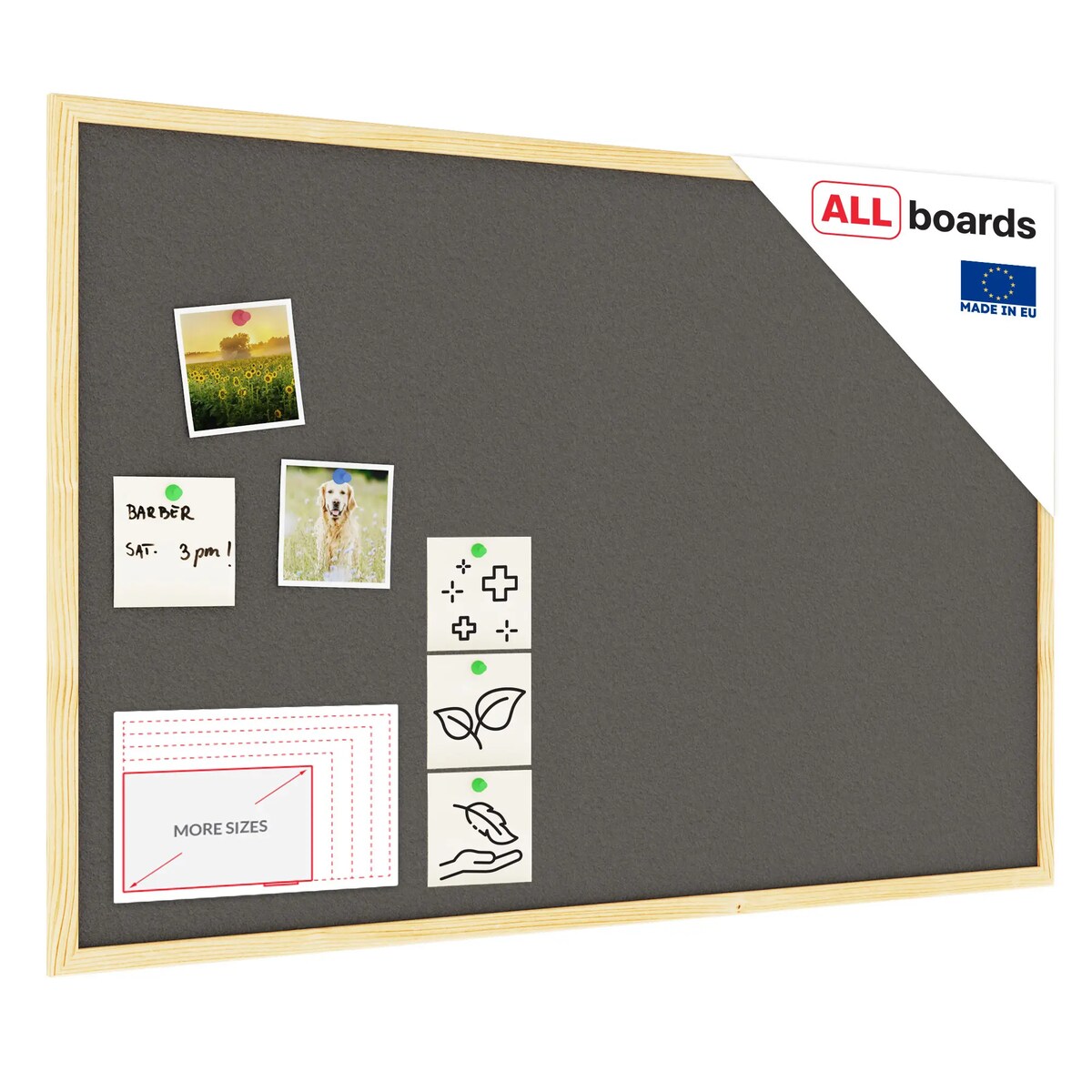 Allboards Grau Pinnwand mit Holz Rahmen 90x60cm Korktafel Korkwand Pinnwand Kork Grau Oberfläche