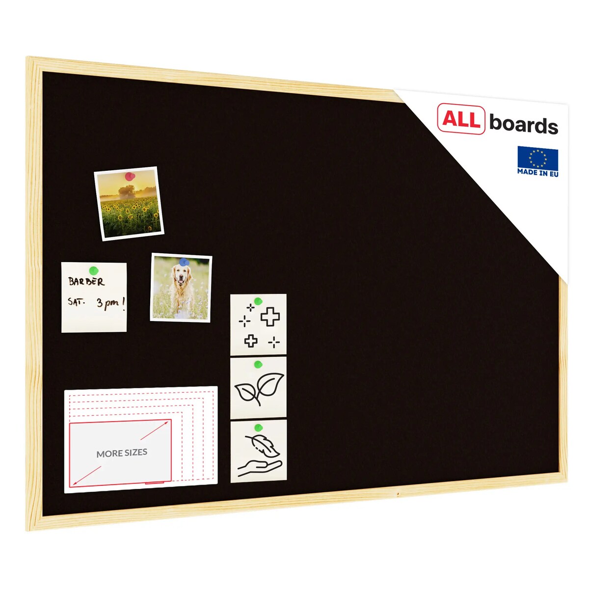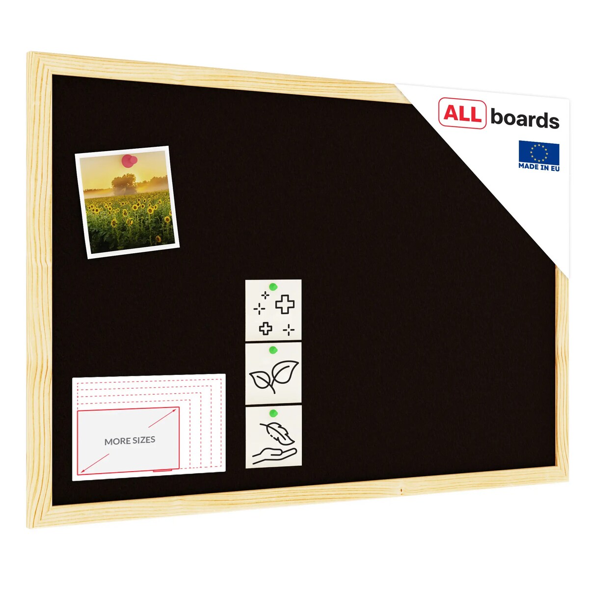 Allboards Schwarz Pinnwand mit Holz Rahmen 90x60cm Korktafel Korkwand Pinnwand Kork Schwarz Oberfläche