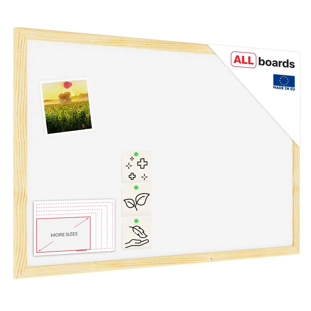 Allboards Weiß Pinnwand mit Holz Rahmen 90x60cm Korktafel Korkwand Pinnwand Kork Oberfläche