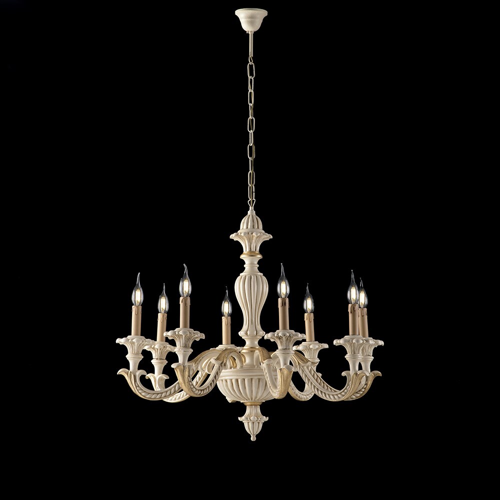 Bonetti Illumina - Leonardo - Kronleuchter aus Elfenbeinholz und Blattgold 6 Lichter 130 - Ø74 - BL180-6-AV