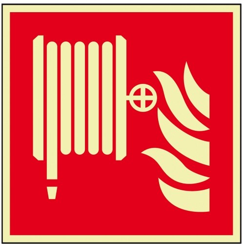 Schild Löschschlauch ISO 7010, Alu, langnachleuchtend, 160-mcd, 148x148 mm