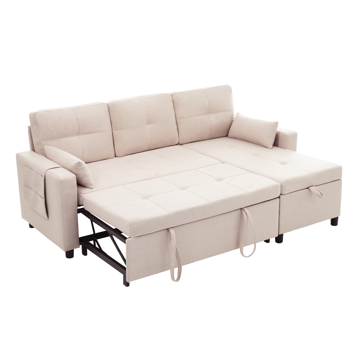 OKWISH Schlafsofa 211x136x87 ausziehbar L-Sofa mit Stauraum und Getränkehalter, modernes Ecksofa Couch für Gäste Wohnzimmer Beige