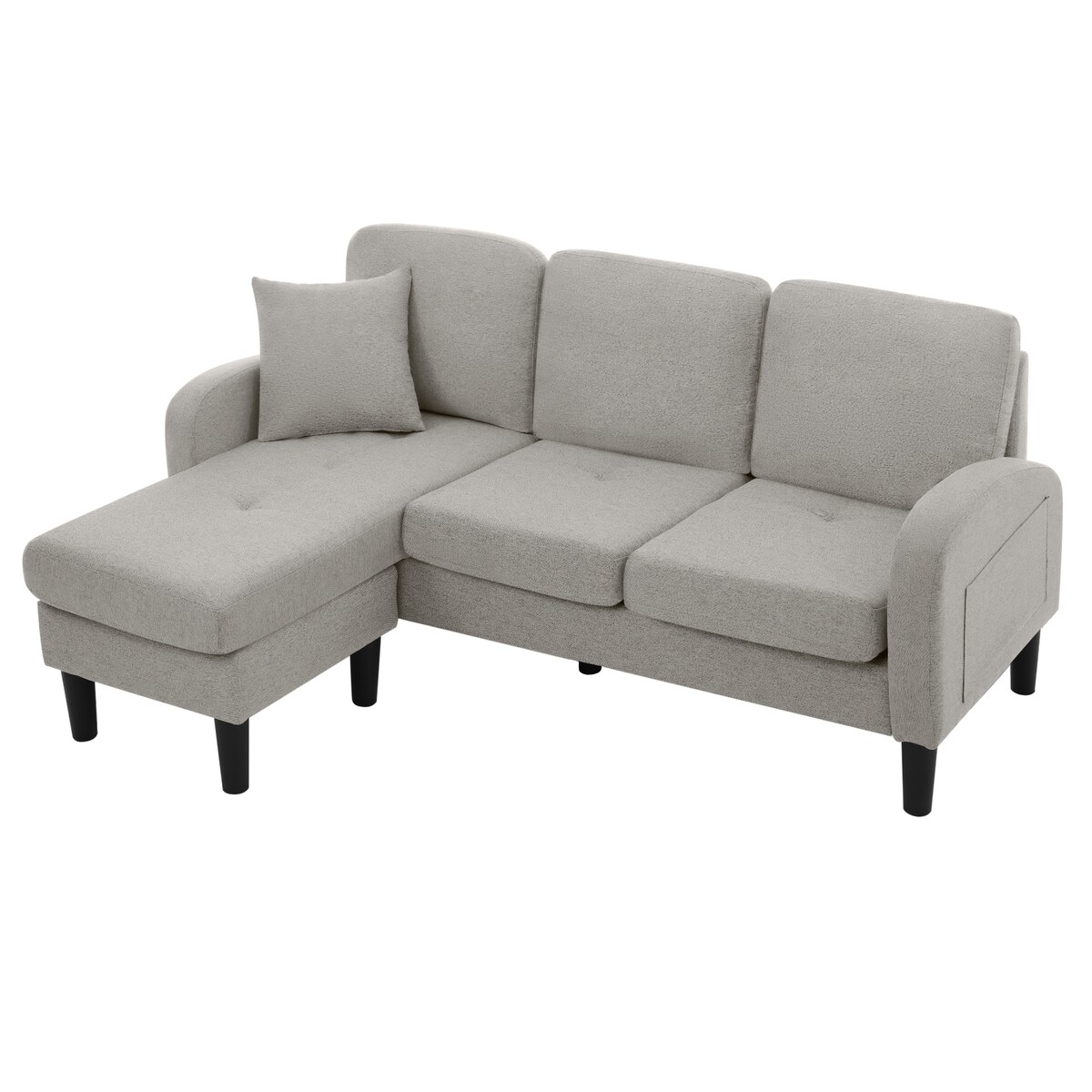 Modernes Sektionssofa, L-Sofa, 3-Sitzer-Sofa, Chenille-Sofa mit Chaiselongue und Armlehnen, 3 Kissen, Seitentasche für Fernbedienung, Grau