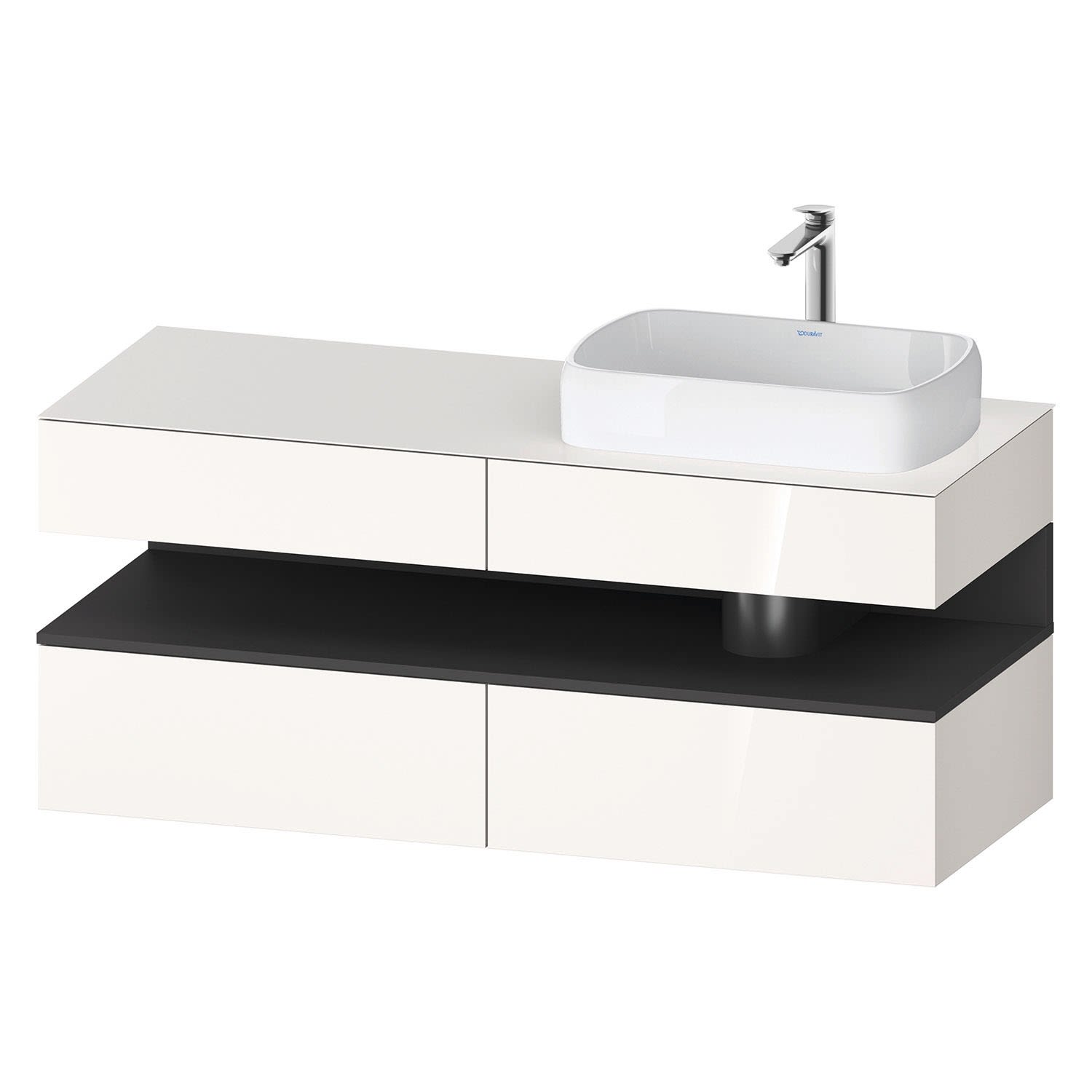 Duravit Qatego Konsolenwaschtischunterbau mit Ausschnitt links 160 x 60 cm, 4 Auszüge, mit LED Beleuchtung, Badmöbel,