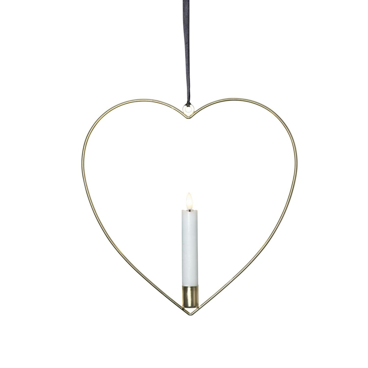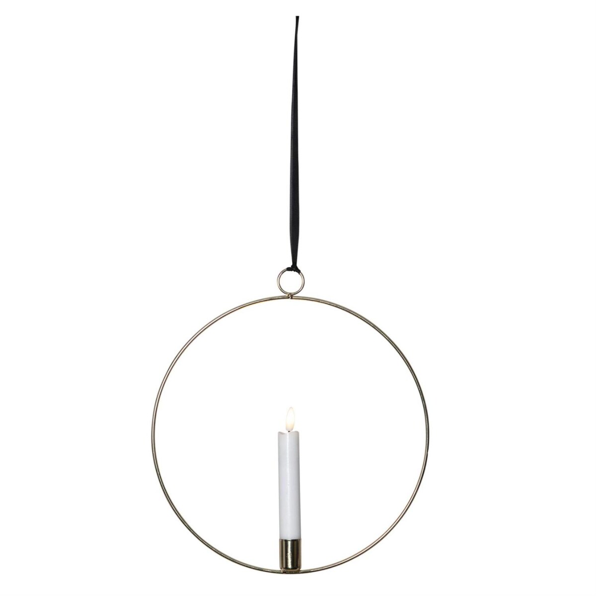 MARELIDA Dekoherz mit LED Kerze Kerzenhalter mit Aufhänger H: 28,5cm Timer Batterie gold