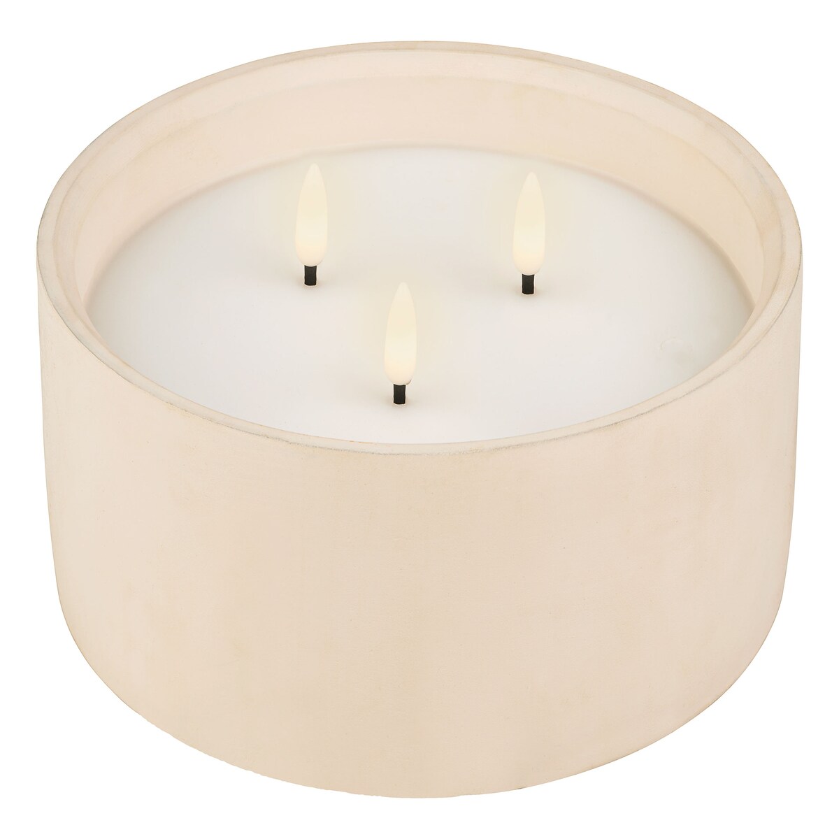 Lumineo Flammenlose LED Kerze 20x8cm Wachs Beton Timer dreiflammig Indoor Outdoor Wachskerze Tischkerze Dekokerze Timerfunktion Betonkerze Weiß
