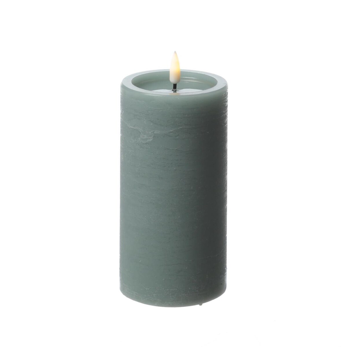 LED Kerze UNIQUE Rustik-Optik Echtwachs 7,5x15cm bis 1500Std grün