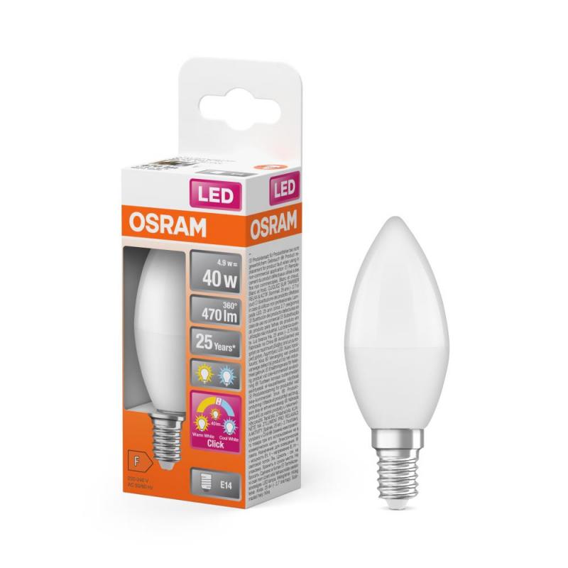 OSRAM E14 LED Kerze Relax & Active mit Farbtemperaturwechsel 4,9W wie 40W warmweiss/ kaltweiss, EEK: F (Spektrum: A bis G)