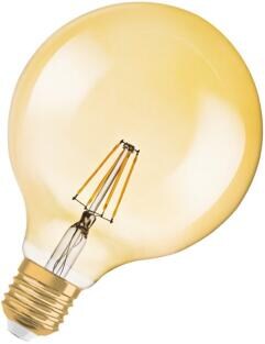 OSRAM Dekorative LED-Lampe G80 Kugel E27 4W = 22W 220lm 1800K Warmweiß 330° Dimmbar Vintage 1906 Filament Amber Deko Leuchtmittel Gold