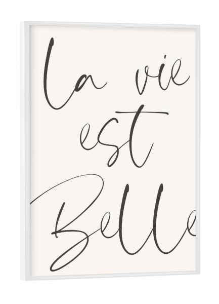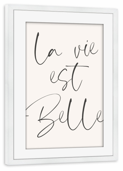 Poster mit Rahmen weiß "La Vie Est Belle French Sign" artboxONE - Typografie