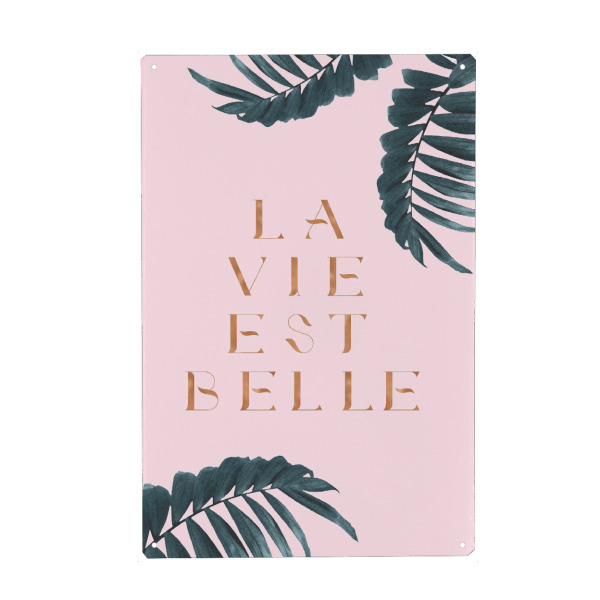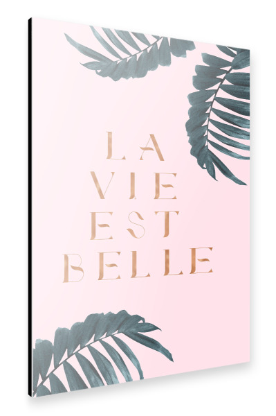 Metall Poster "La Vie est Belle Rose Gold Edition" artboxONE - Natur,Abstrakt - Quote,French,France,Palm - Blechschild