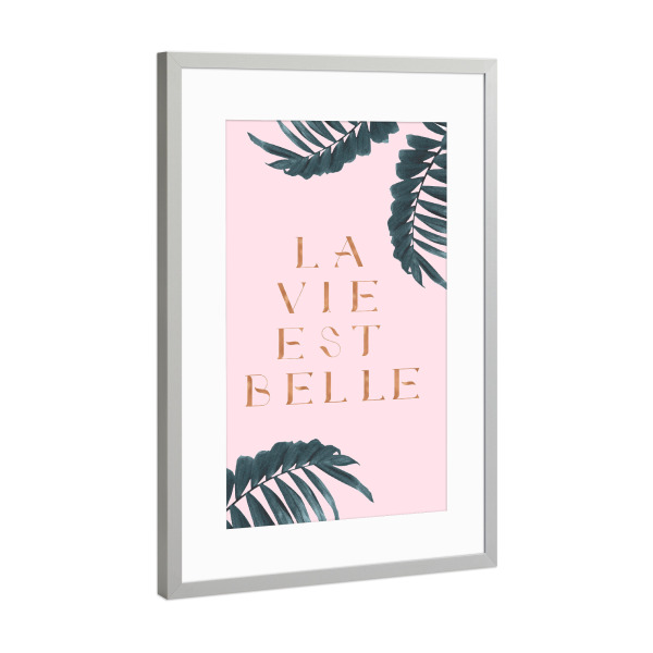 Poster mit Rahmen Silber "La Vie est Belle Rose Gold Edition" artboxONE - Natur,Abstrakt - Quote,French,France,Palm