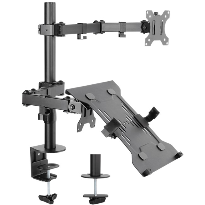 goobay Deluxe Monitorhalterung mit Laptop-Arm, schwarz, für Monitore von 17" -