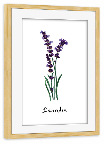 Poster mit Rahmen kiefer "Lavender" artboxONE - Natur,Floral,Für Mama - Herb,Spices,Provence,French,Lavender,Watercolor,Floral,Kitchen