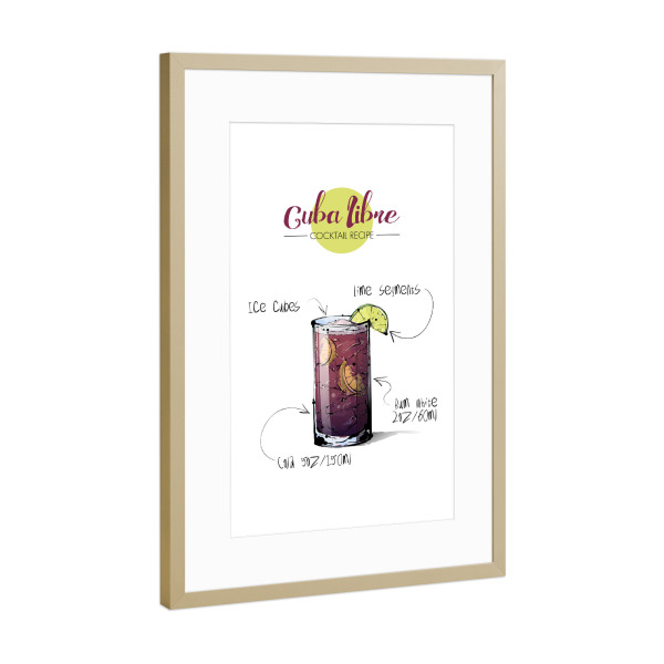 Poster mit Rahmen Gold "Cocktail Cuba Libre" artboxONE - Essen & Trinken,Essen & Trinken / Alkohol,Festivals