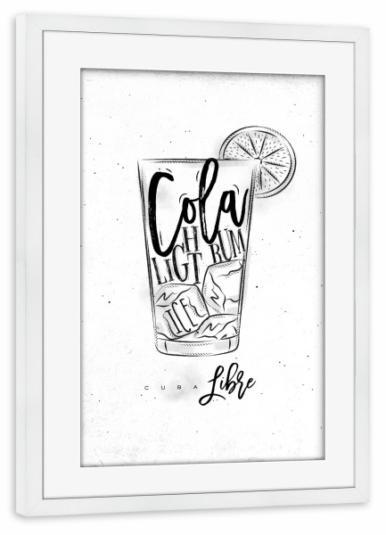 Poster mit Rahmen weiß "Cuba Libre cocktail white" artboxONE - Schwarzweiß,Essen & Trinken / Alkohol,Festivals