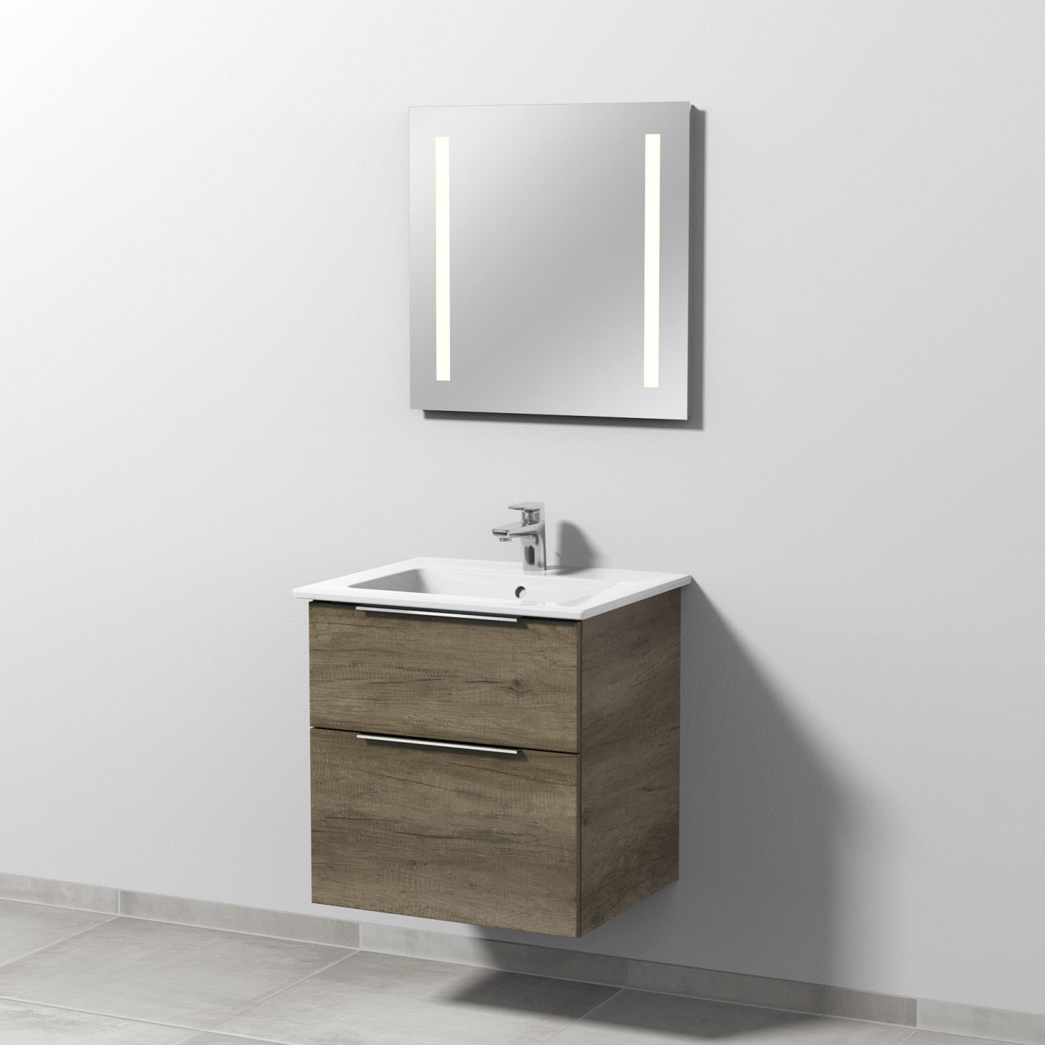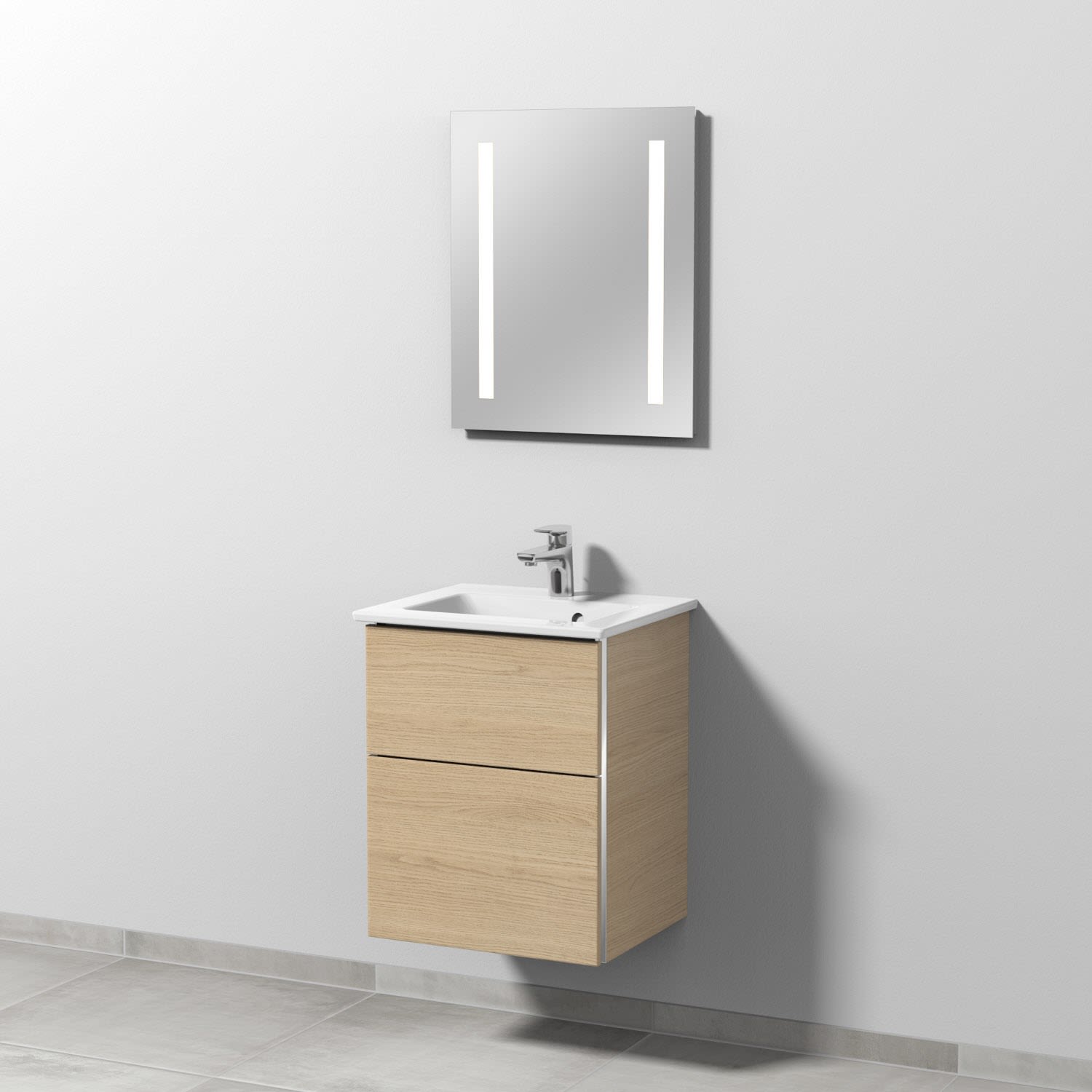 Sanipa 3way Möbelset-1 inkl. Lichtspiegel "LUCY", 60 cm, mit Aufsatzgriffen UM32122+LS4109Z, Badmöbel,
