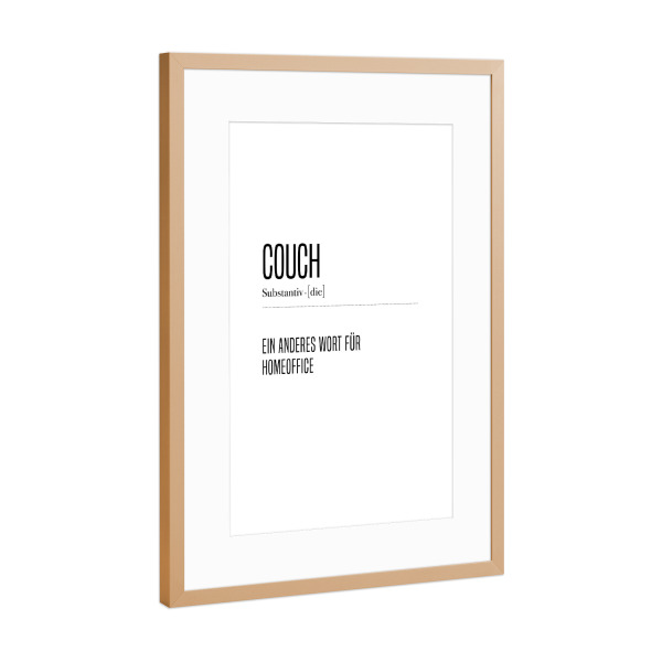 Poster mit Rahmen Kupfer "Couch" artboxONE - Typografie,Schwarzweiß,Lustig - Sofa,Chillen,Entspannen,Arbeiten,Fernsehen,Tv,Liegen,Büro