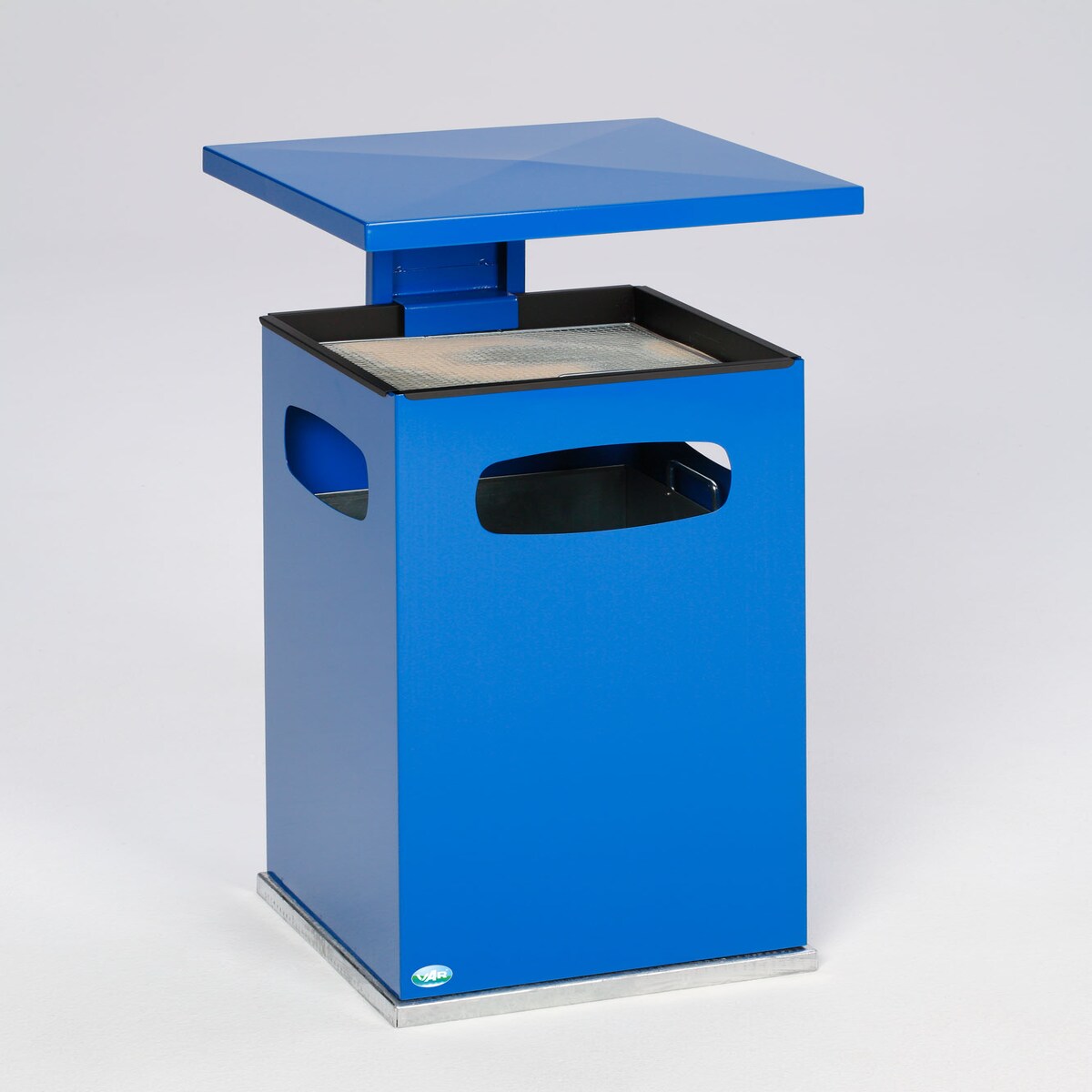 PROREGAL Kombiascher mit verstärktem Schutzdach | 38 Liter, HxBxT 91x39,5x39,5cm | Verzinkter Stahl | Blau | Mülleimer Aschenbecher Abfalleimer