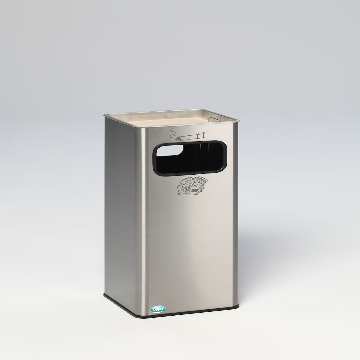 PROREGAL Eckiger Kombiascher mit Einwurfblende | 15 Liter, HxBxT 54x30x14cm | Verzinkter Stahl | Silber | Mülleimer Aschenbecher Abfalleimer
