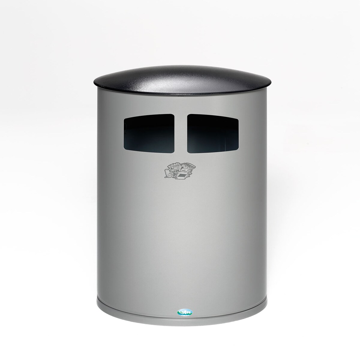 PROREGAL Robuster Kombiascher mit 2-Fach-Einwurf | 104 Liter, HxBxT 99x43,5x43,5cm | Verzinkter Stahl | Silber | Mülleimer Aschenbecher Abfalleimer