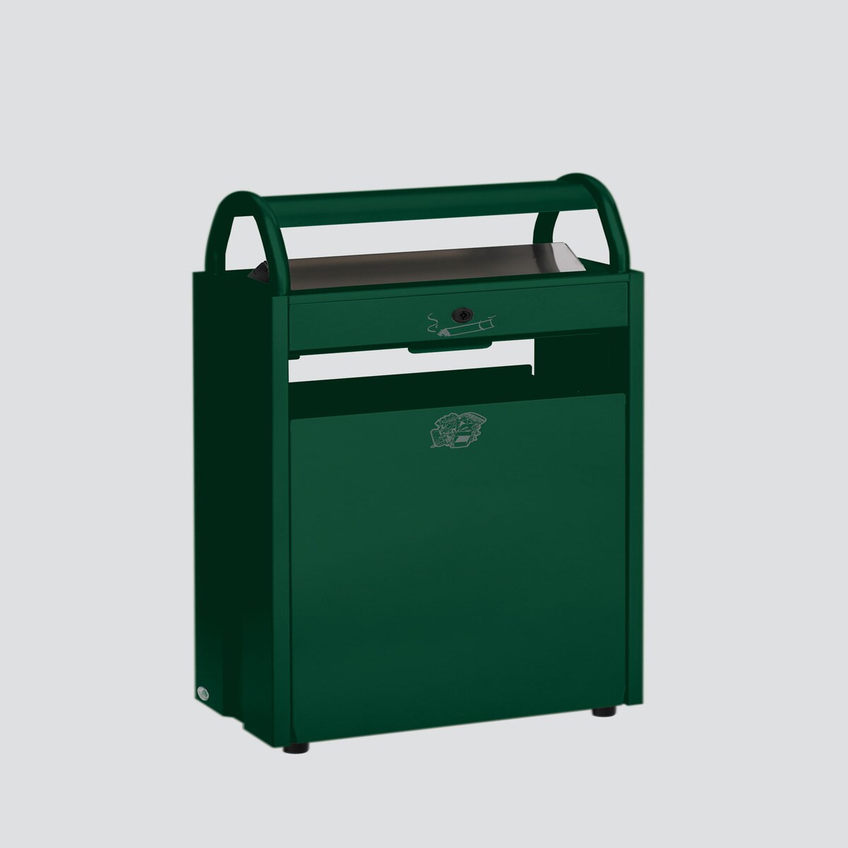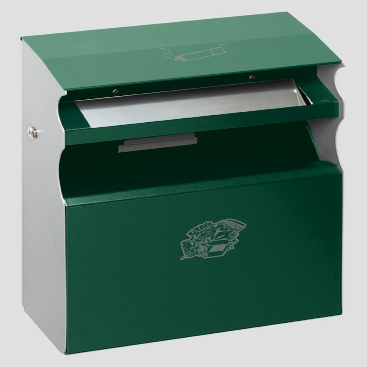 PROREGAL Kombiascher mit Schloss und Blenden | 60 Liter, HxBxT 98x48,5x26,5cm | Stahl | Grün | Mülleimer Aschenbecher Abfalleimer