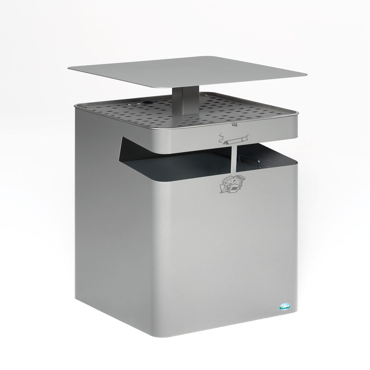 PROREGAL Kombiascher mit Schutzdach und Sieb | 72 Liter, HxBxT 92x45x45cm | Verzinkter Stahl | Silber | Mülleimer Aschenbecher Abfalleimer