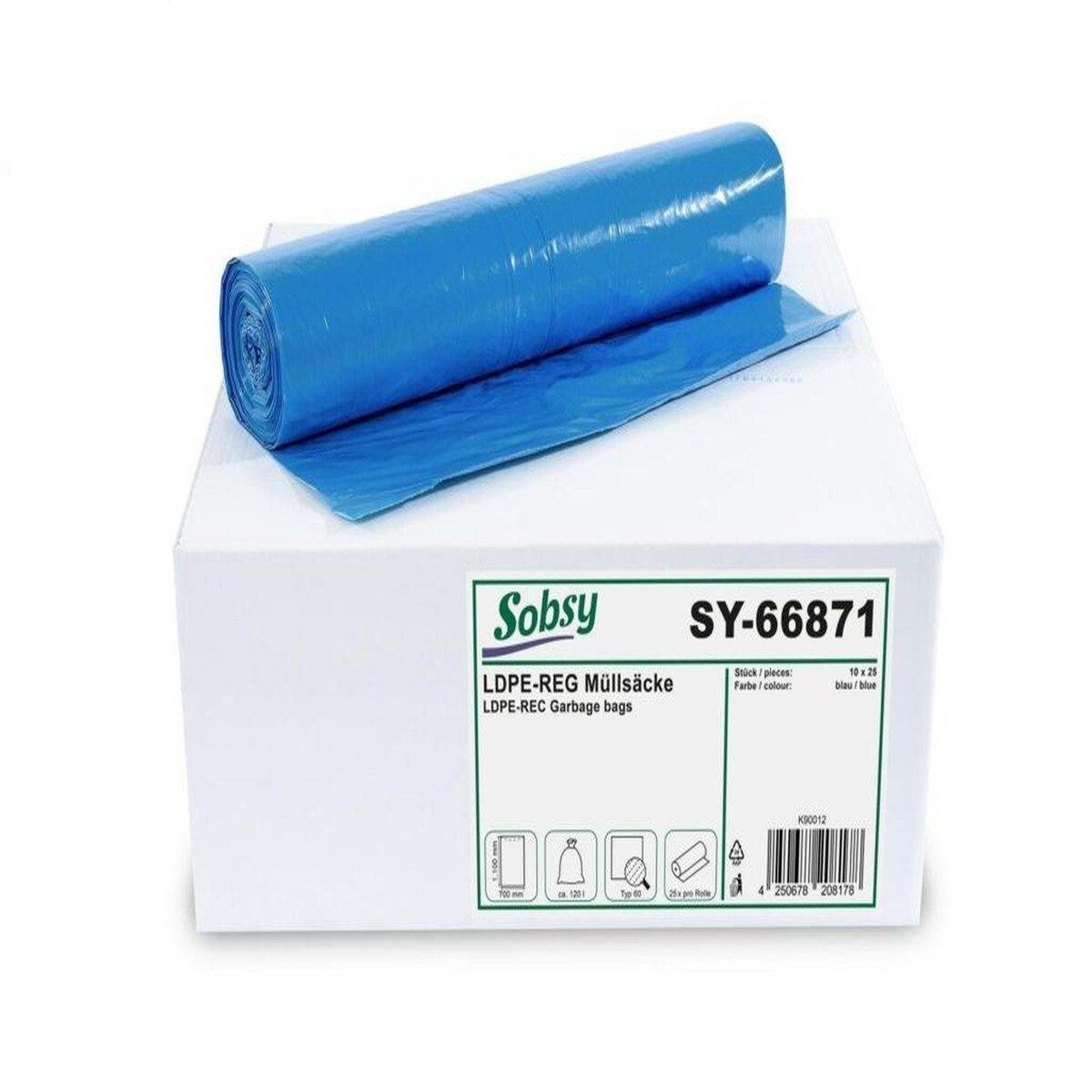 Müllsäcke 120 ltr. Typ70, blau, 70x110cm 1Rll. á 25St.