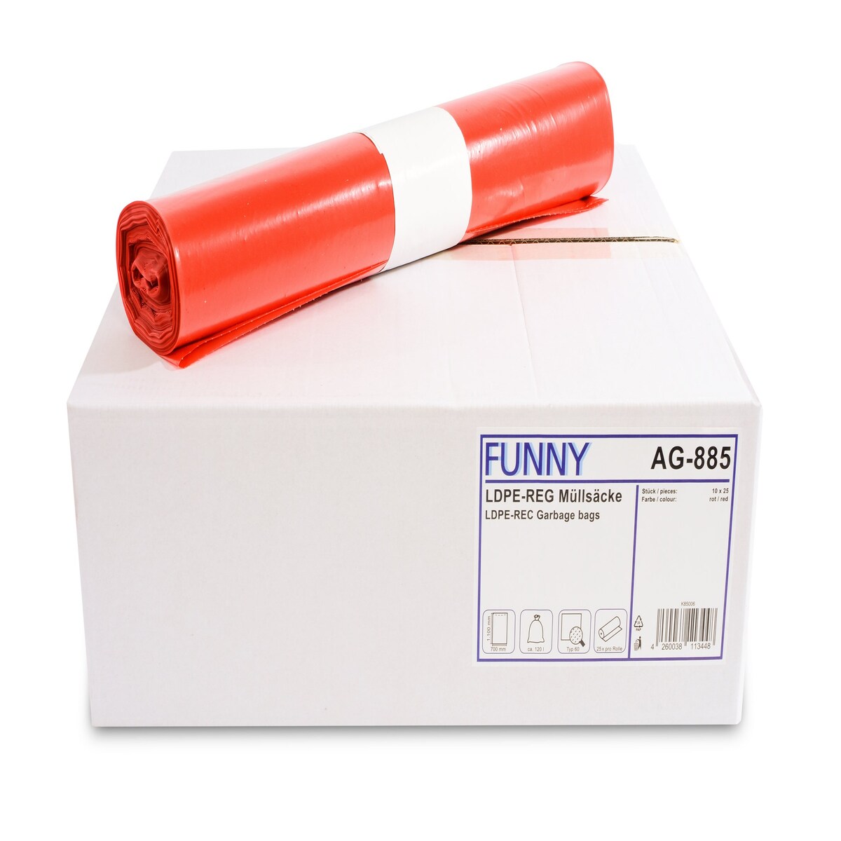 Funny Müllsäcke, rot, 120 Liter, 250 Stück, LDPE-Reg. (10 Rollen á 25 Stück)