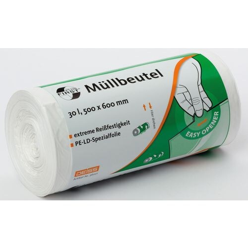 DEISS First Plus Leichte Belastung Müllsäcke 30 L Weiß PE (Polyethylen) 12 Mikron 50 Stück