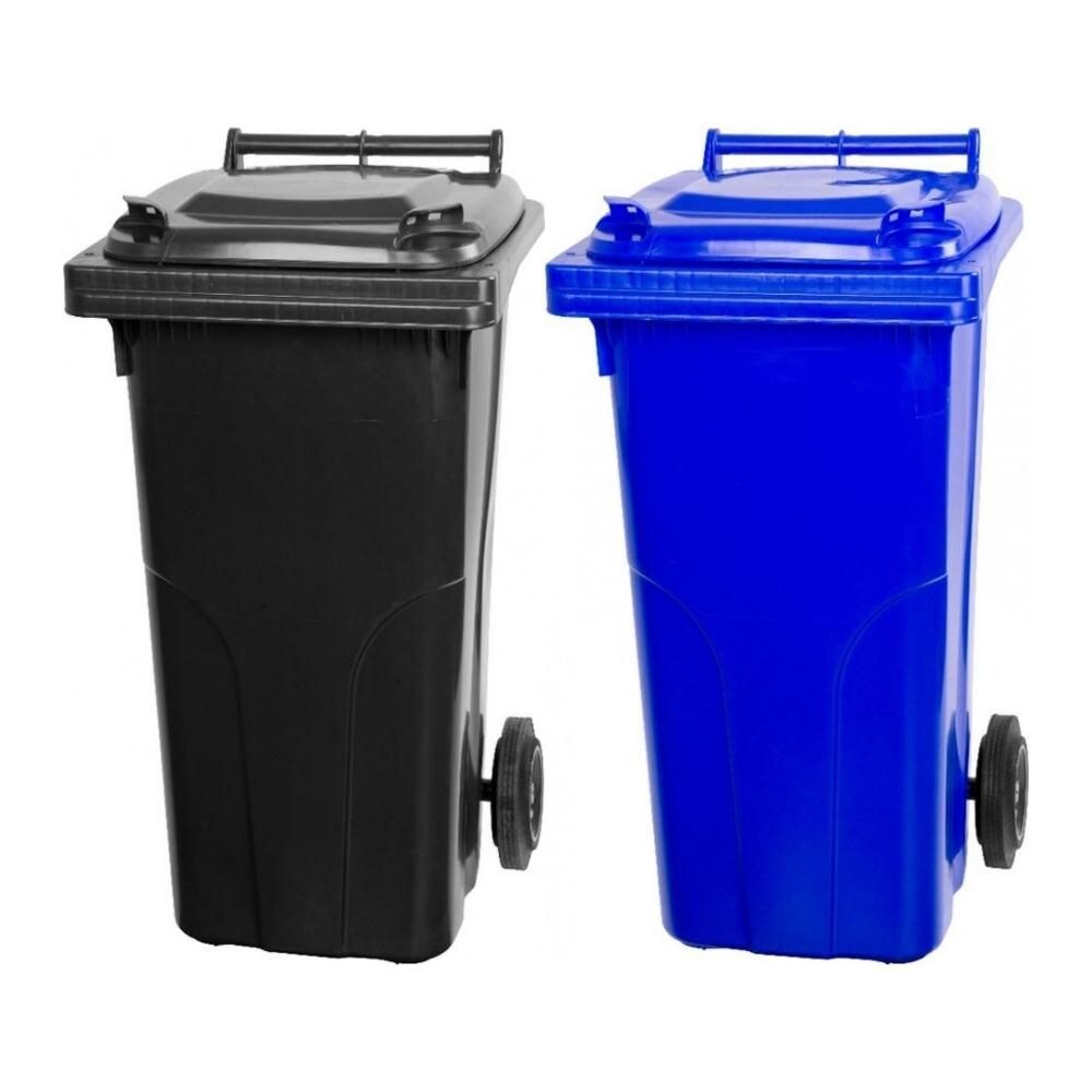 Mega Deal 2x PROREGAL 2-Rad-Mülltonne, 120 Liter, HDPE Kunststoff, Grau & Blau, Mülltonne, Müllgroßbehälter, Mülleimer, Abfalltonne, Müllbehälter