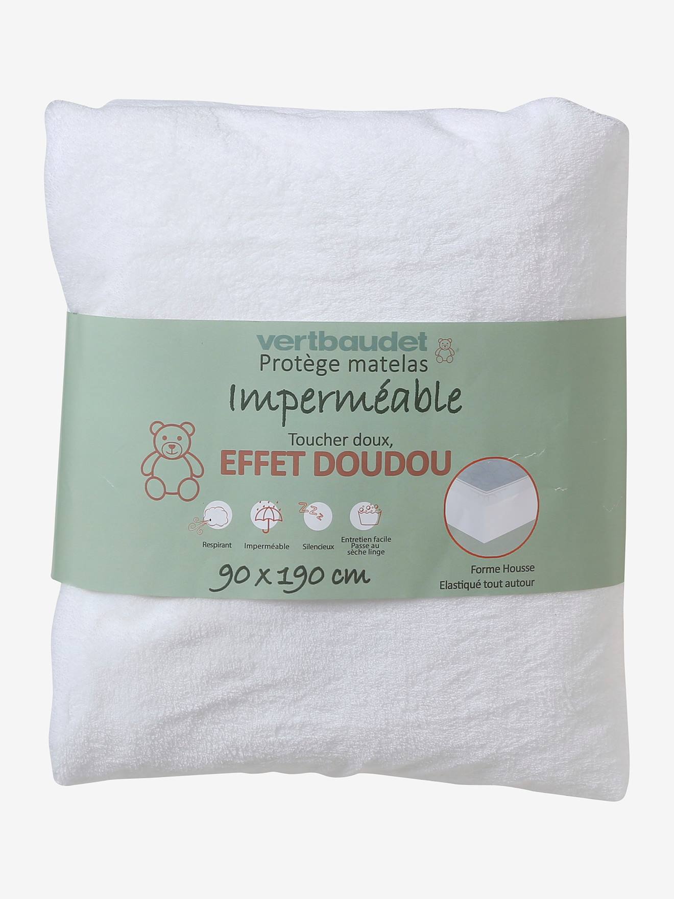 Frottee-Schonbezug für Baby/Kinder Matratzen, atmungsaktiver Matratzenschutz, BI-OME-Ausrüstung weiß Gr. 60x120 von vertbaudet