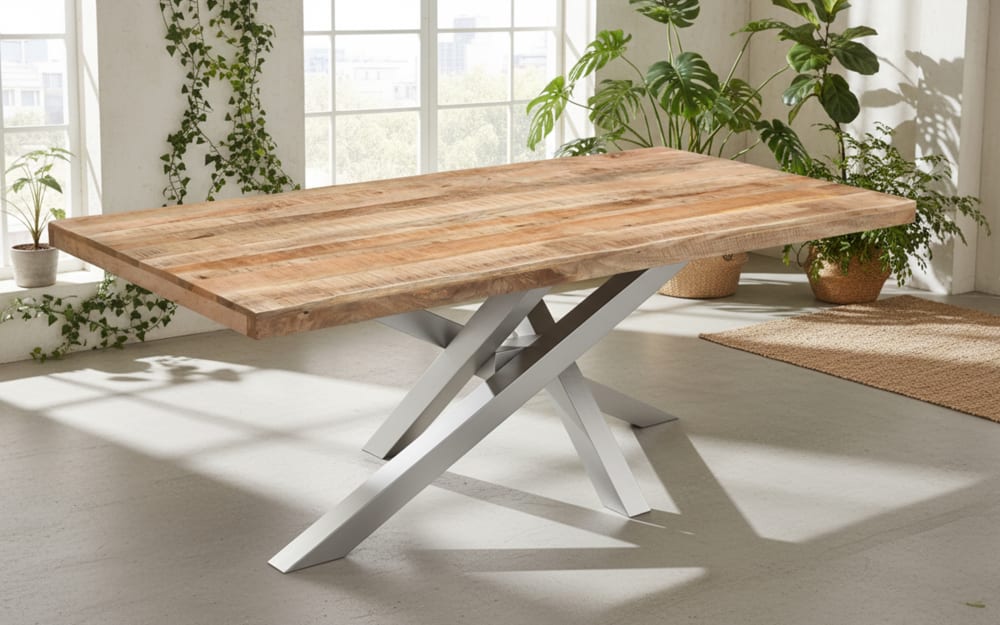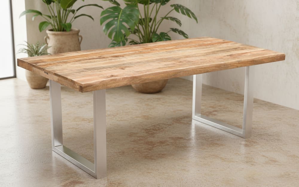 Wolf Möbel Esstisch Mesa verde, Mangoholz/silberfarbig Massivholz, Metall 180 cm