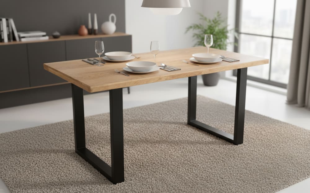 Wolf Möbel Esstisch Mesa verde, Eiche/schwarz hellbraun Massivholz, Metall 180 cm