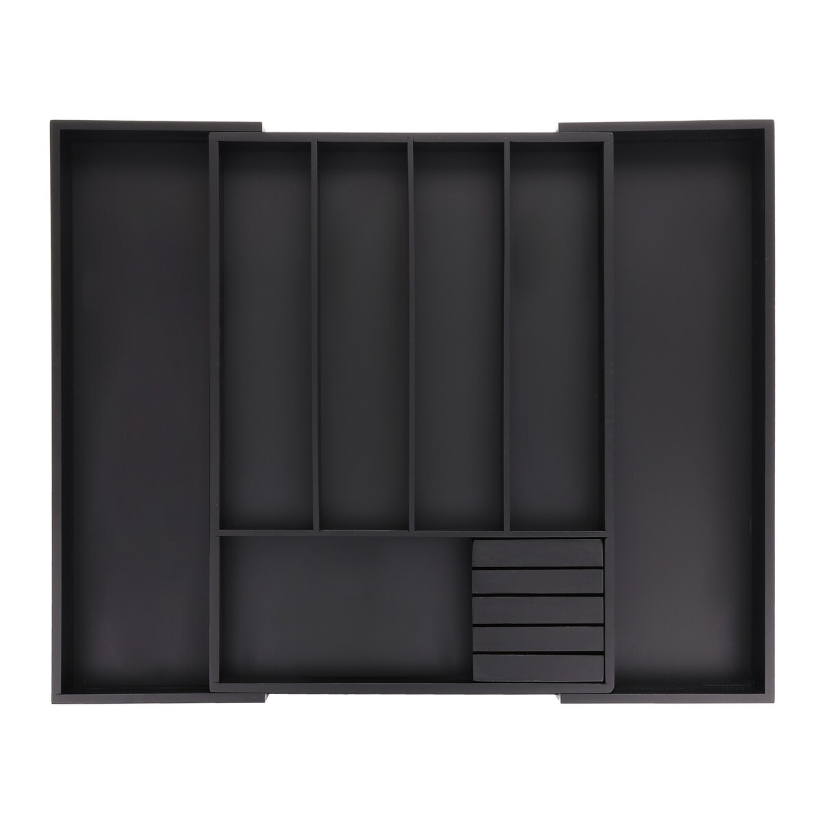 Relaxdays Besteckkasten ausziehbar, Bambus, HBT: 5 x 32,5-55 x 44,5 cm, 5-7 Fächer, Besteckfach mit Messerblock, schwarz