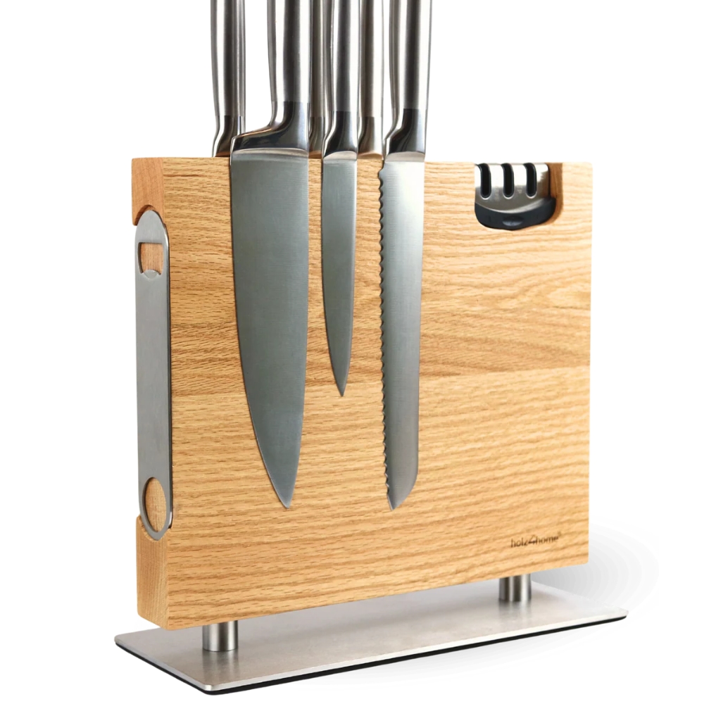DELUKE Magnetischer Messerblock ohne Messer HYFO [MIT MESSERSCHÄRFER] - Eiche, inkl. Flaschenöffner | Messerhalter magnetisch Küchenmesser Organizer