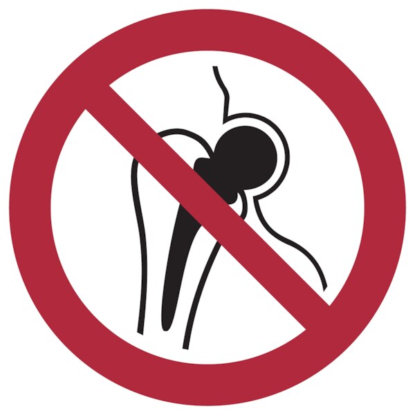 Verbotsschild, Kein Zutritt für Personen mit Implantaten aus Metall P014 - ASR A1.3(DIN EN ISO 7010) - 100 mm Folie selbstklebend