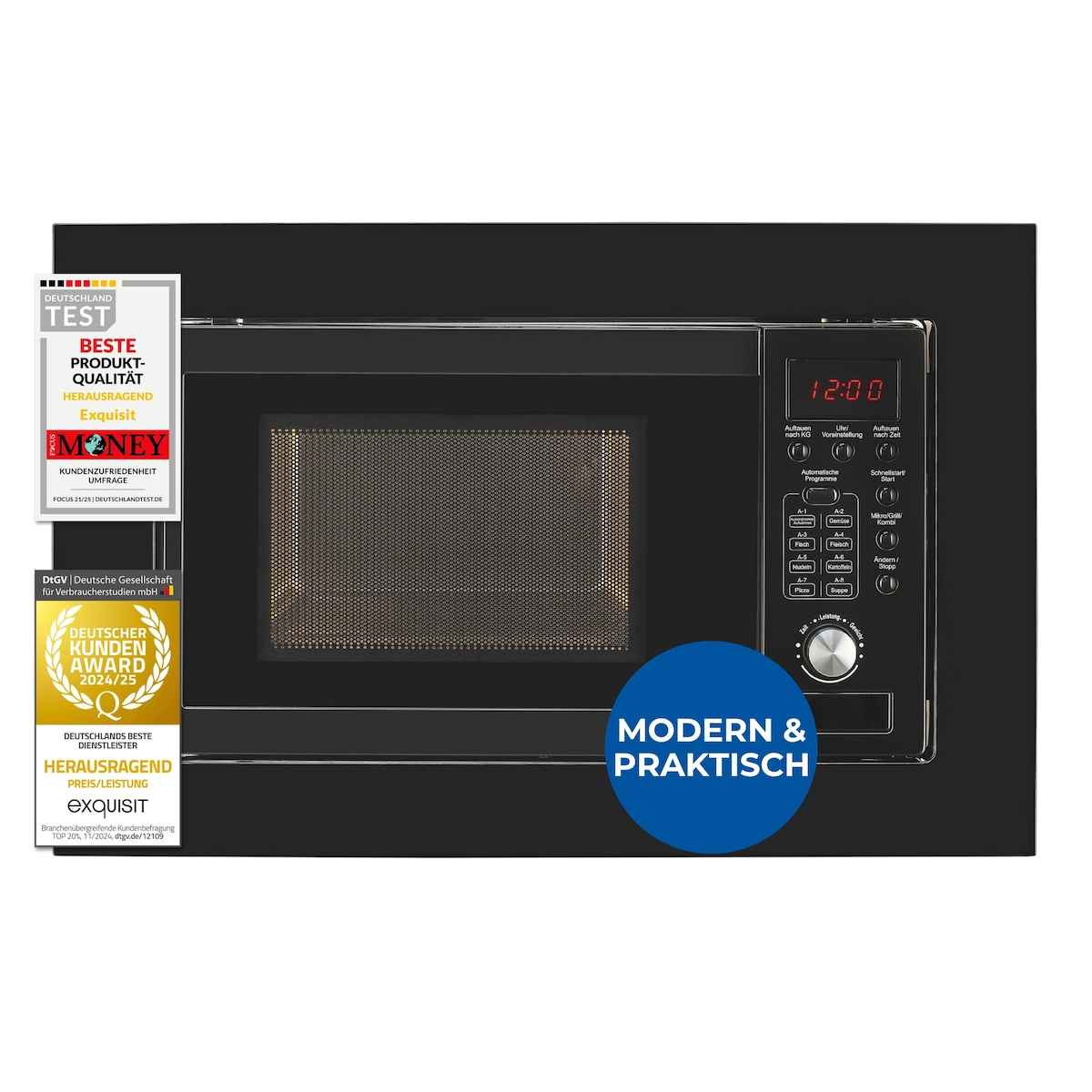 Exquisit Einbau-Mikrowellenherd, 20 Liter, Mikrowelle + Grill, 8 automatische Kochprogramme,EMW20.1 G schwarz