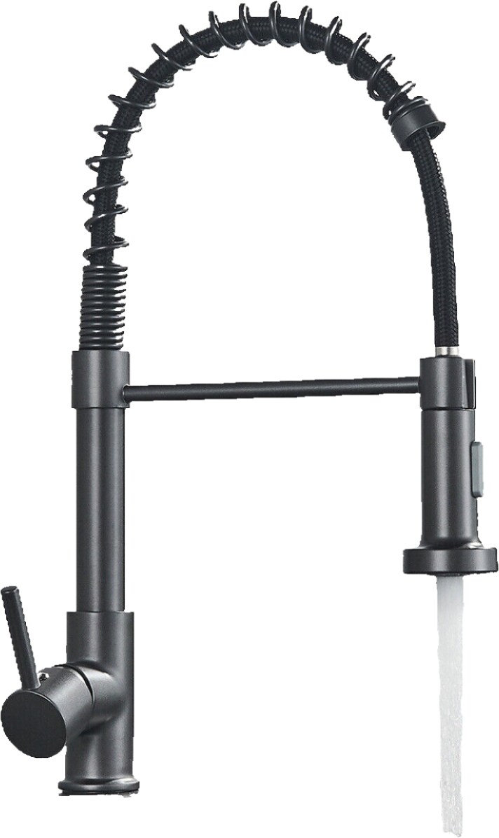 Küchenarmatur, Schwarze Frühling mit seitlichem Sprühkopf, Dual Ausguss Mischbatterie für Waschbecken, 360° drehbare Küchenarmatur