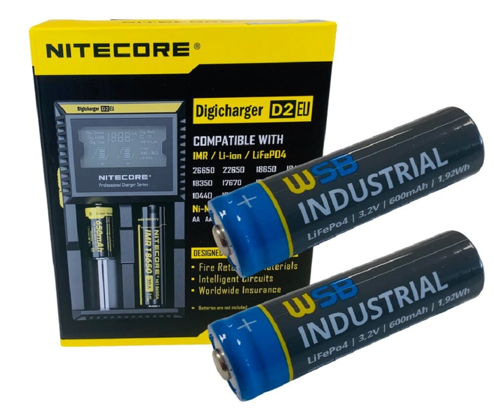 SET Nitecore D2 Ladegerät + 2x 14500 AA Solar Akku LiFePO4 3,2V 600mAh