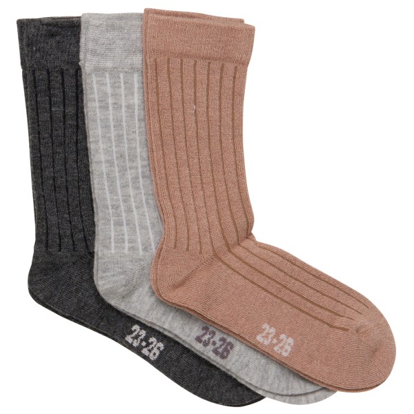 Minymo Wool Socks Rib 3-Pack Kinder (Gr 15-18 |braun)