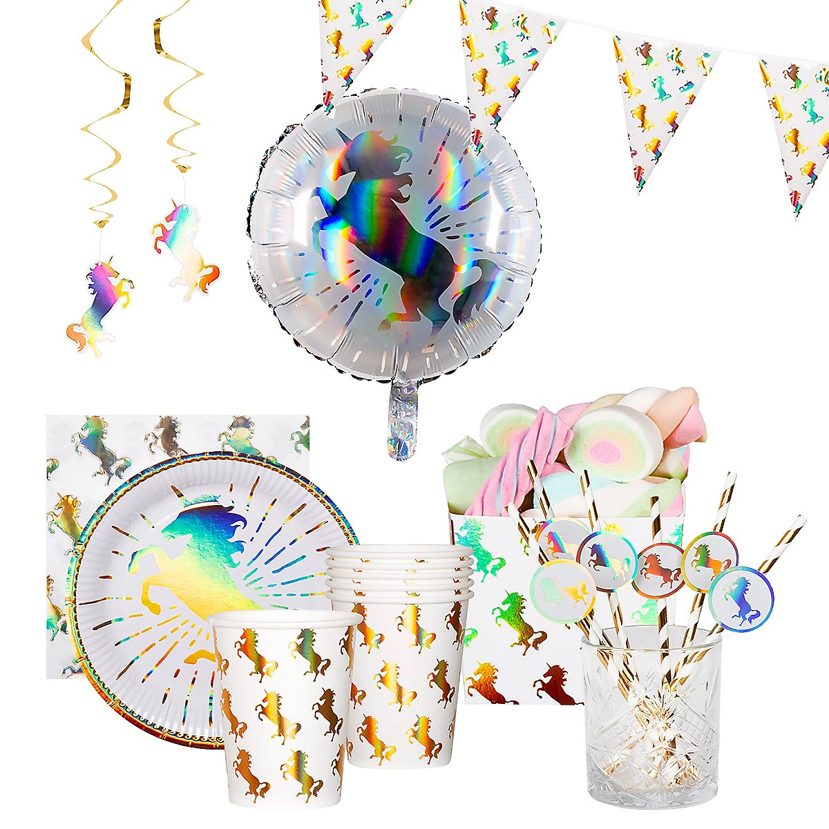 Unicorn party decoration set 40 pieces for 6 persons