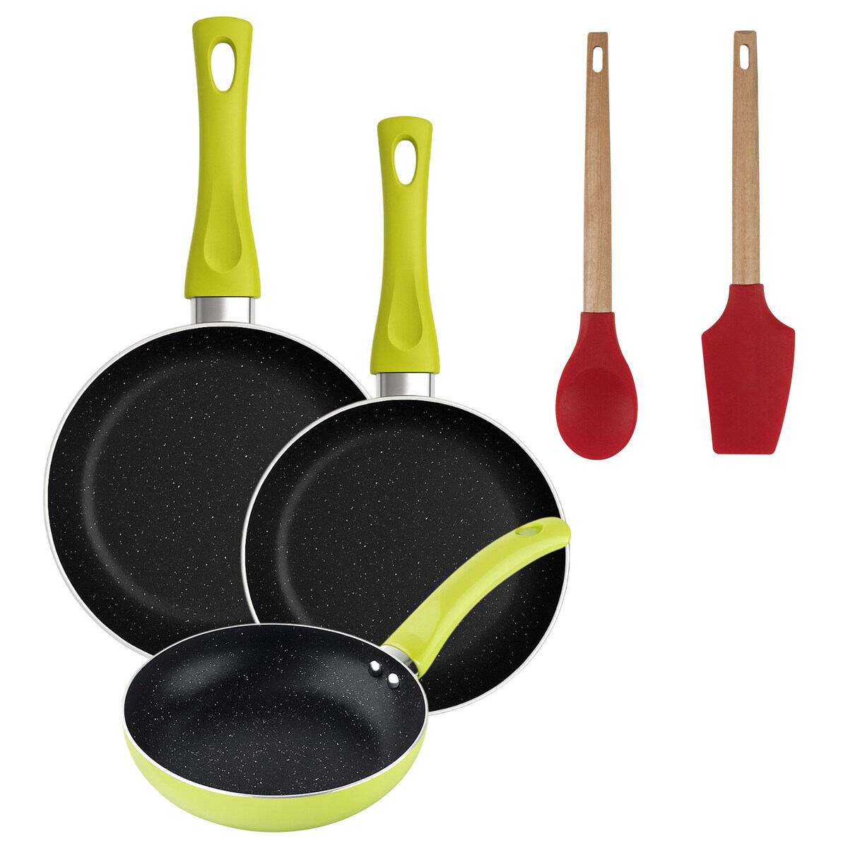 BERGNER - Set aus 3 Pfannen Ø20/Ø24/Ø28 cm gepresstes Aluminium Molen Grün 2-teiliges Küchenutensilien-Set EXCALIBUR