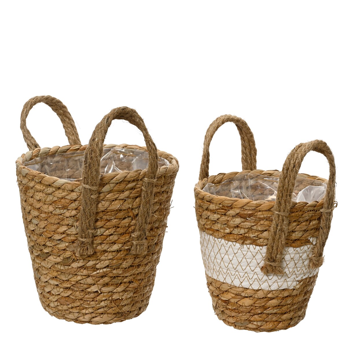 KSD 2 Blumentöpfe geflochten 14-17cm - Übertopf Blumen Pflanzen Korb mit Henkel Flechtkorb Aufbewahrung Blumenkorb Pflanzenkorb Indoor Deko Natur Weiß