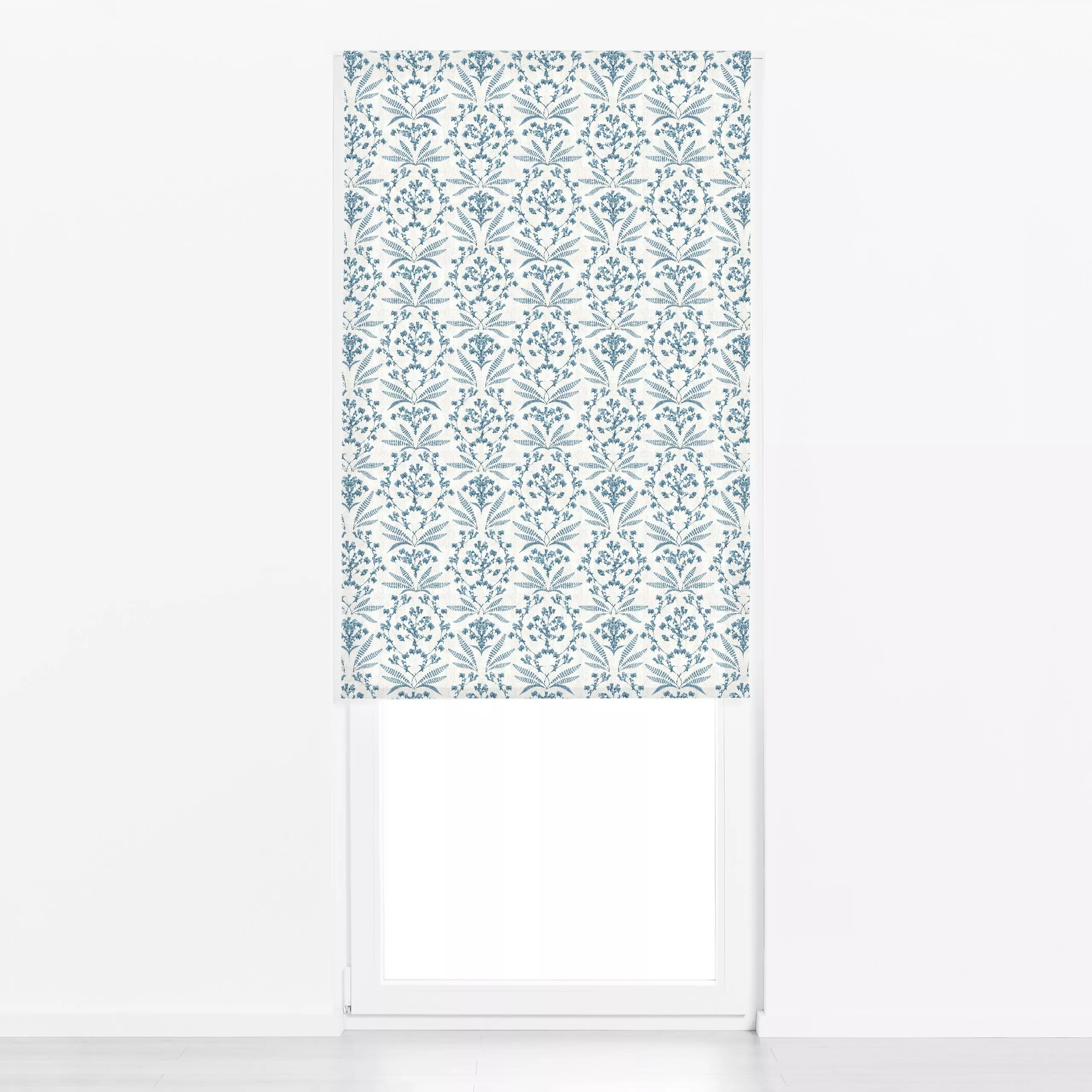 Raffrollo Cottage Blue Blumenkranz - Blumen & Florales, Pflanzen & Botanik, Retro & Vintage - von „Bloomery Decor"; Muster, ...